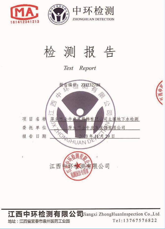 萍乡市金牛皮革服饰有限公司土壤地下水检测报告公示20231129